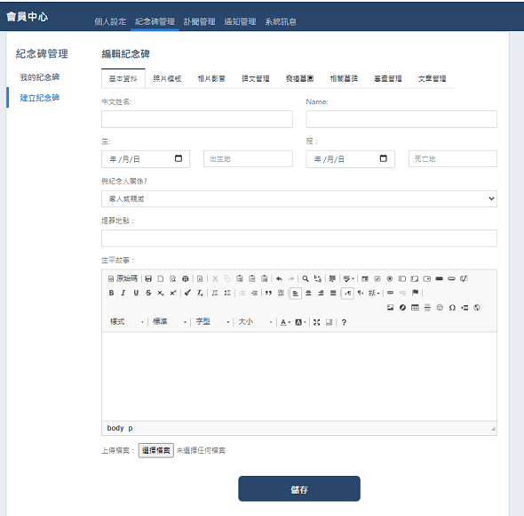 「被人懷念」是人們心底的渴望,我們都希望在死後,有人會持久地紀念我們。耶穌在最後晚餐時,親自告訴他的門徒說:「你們要這樣做,來紀念我。」孔夫子說過:「疾歿世而名不稱」也就是俗語所說的,人死留名。為已經往生的親友在雲端立碑,電腦網路無遠弗屆,全球親友都可以隨時隨地紀念他們。